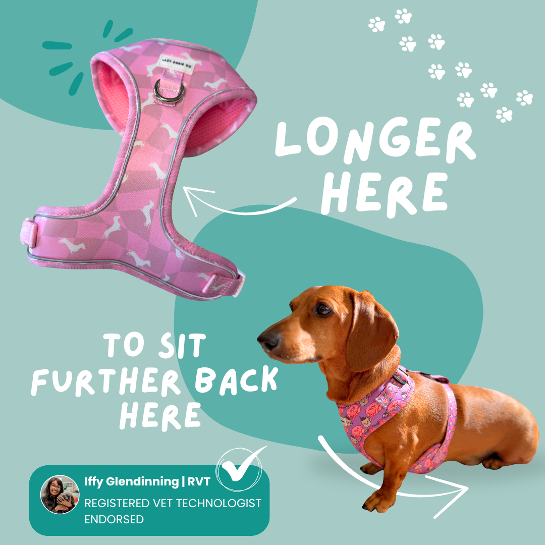 We’re proud to share that a Registered Veterinary Technician has officially endorsed Lazy Doxie Co. harnesses. Designed for long, low bodies, our harnesses keep straps clear of sensitive armpits, offer full adjustability, and provide the support dachshunds need for safer, more comfortable walks. Because when the experts trust our gear, you can too.