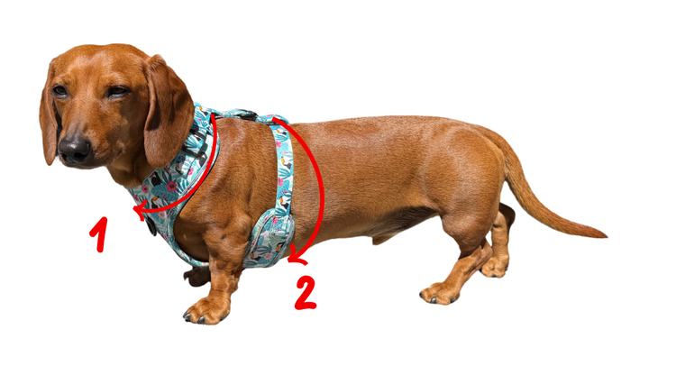 Lazy Doxie Co. harnesses are designed specifically for dachshunds, so our sizing differs from standard harnesses. Accurate measurements are essential to ensure a secure and comfortable fit.