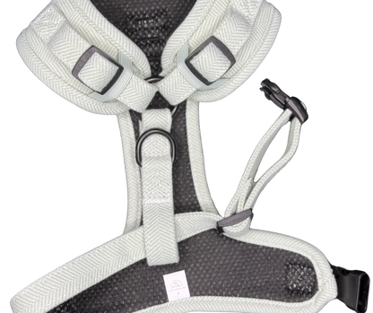 Introducing our Harness - 'Hound de Sage'; As our joint CEO's can attest, you can trust that our dachshund-specific harness in our exclusive 'Hound de Sage' design, provides the perfect fit and support for your four-legged friend. With up to 4.5cm extra length in the chest, padded with neoprene and a breathable mesh liner, this stylish and supportive harness ensures a comfortable and secure fit with adjustment points at the neck and waist.