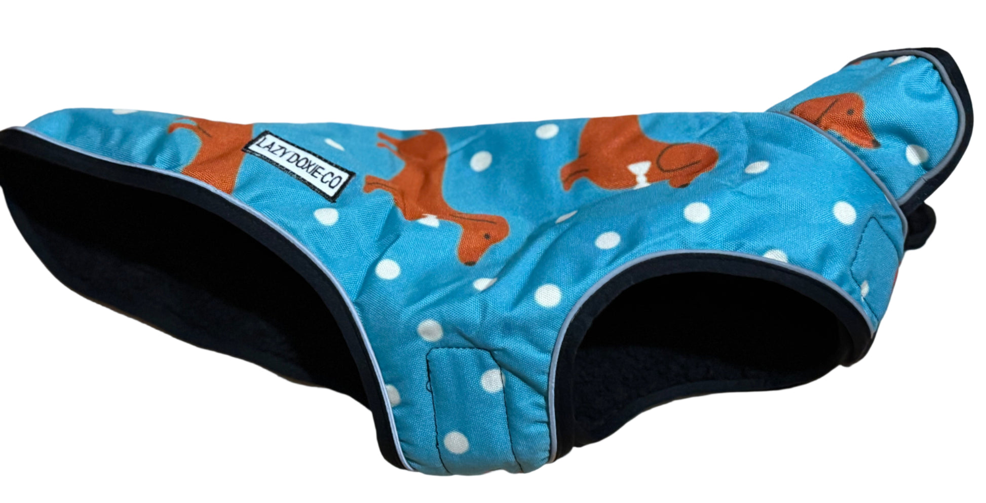 💧 Waterproof outer shell in exclusive Lazy Doxie prints.